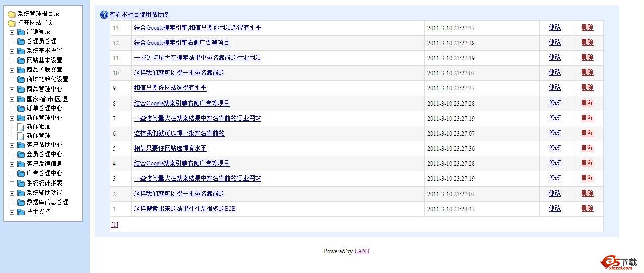 客户帮助信息分类管理、客户帮助信息添加/修改/删除