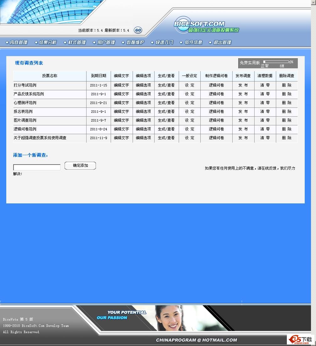当前位置:下载COM绿色软件园 > asp.net源码 > 投票调查 > 佰思超强自定义调查投票系统 v5.4