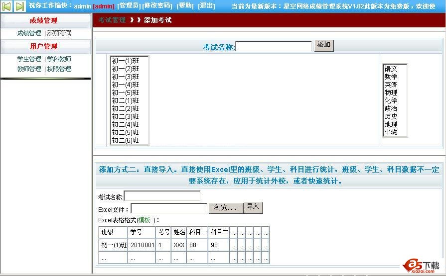 星空成绩管理系统 v1.05更新记录: