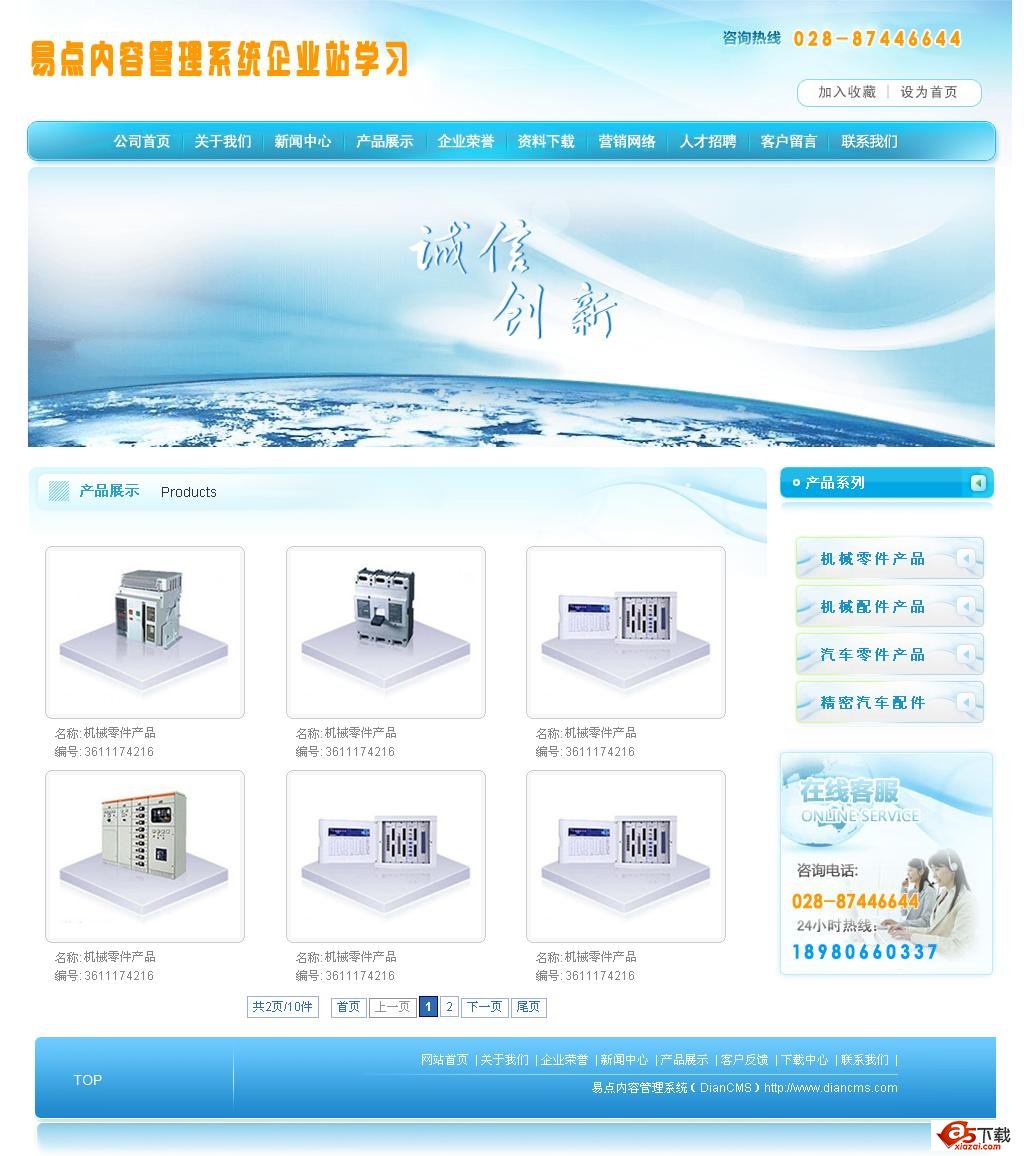 该企业站模板从互联网下载而来,仅提供大家学习易点CMS使用。后台/admin/default.aspx