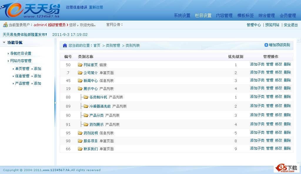 栏目设置:添加修改导航栏排序等操作;