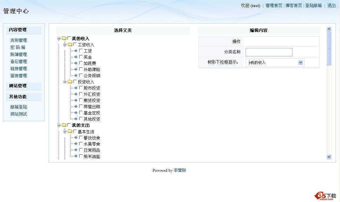 MySpace(我的空间)是一款简单实用的账簿管理系统,采用.NET+ACCESS开发,简单三层结构,包含了账簿管理、网址收藏、备忘管理、密码箱、类别管理等功能。