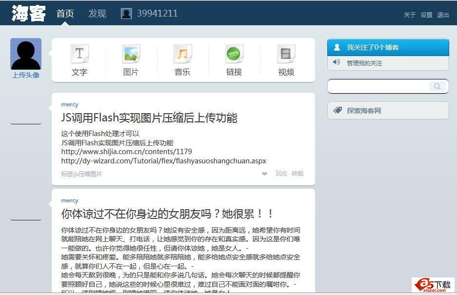 海客轻博客,轻松分享你的兴趣。便捷的多图发布,清新文艺的个性化模板,时尚达人的聚集地,用图片记录生活的最佳选择,随地随地与好友一起,在兴趣中寻找快乐.