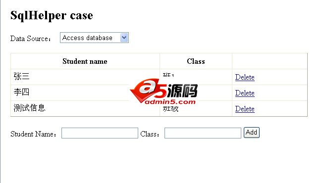 sqlhelper是一个完全开源的源码组件,使用sqlhelper可以方便操作sqlserver、oracle、access等数据库。语法简单,提高性能。