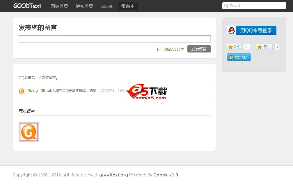 GBook无刷新QQ登陆留言本 - GoodText.org留言本asp.net版
