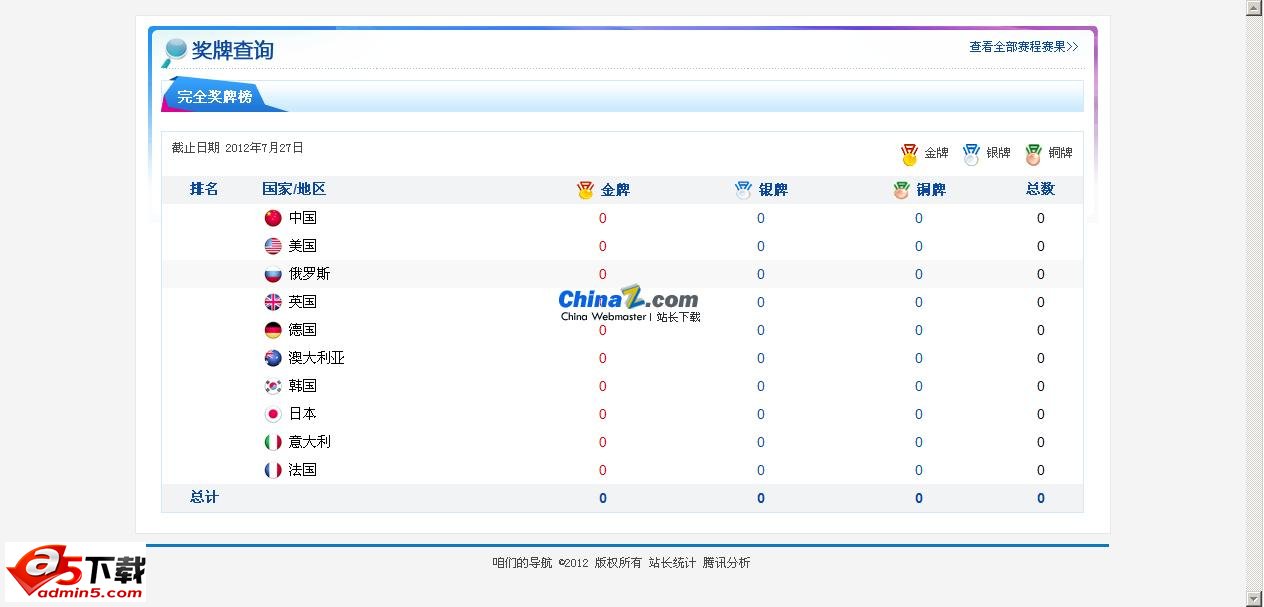 2012奥运奖牌榜,采集于24体坛网,只提供前十名的,呵呵.......
