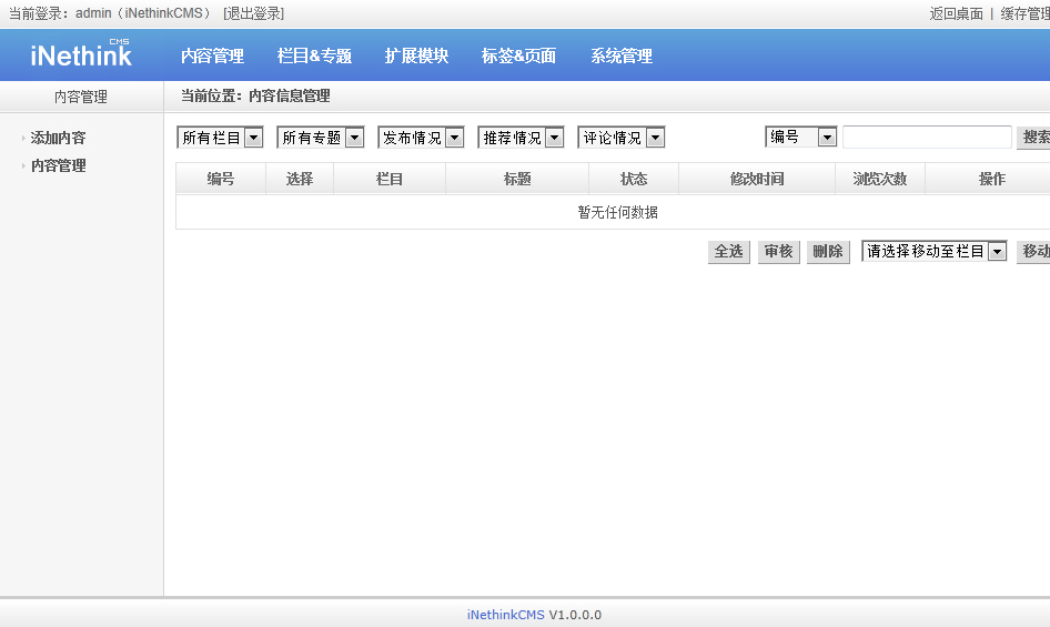 iNethinkCMS,基于.NET C#2.0 分层开发。自主的模板引擎(类标签式)、独有的插件扩展技术,可以适应各类的网站开发需要。全面免费、开源,您可根据实际项目需求,进行自主修改,而不用担心版权问题。