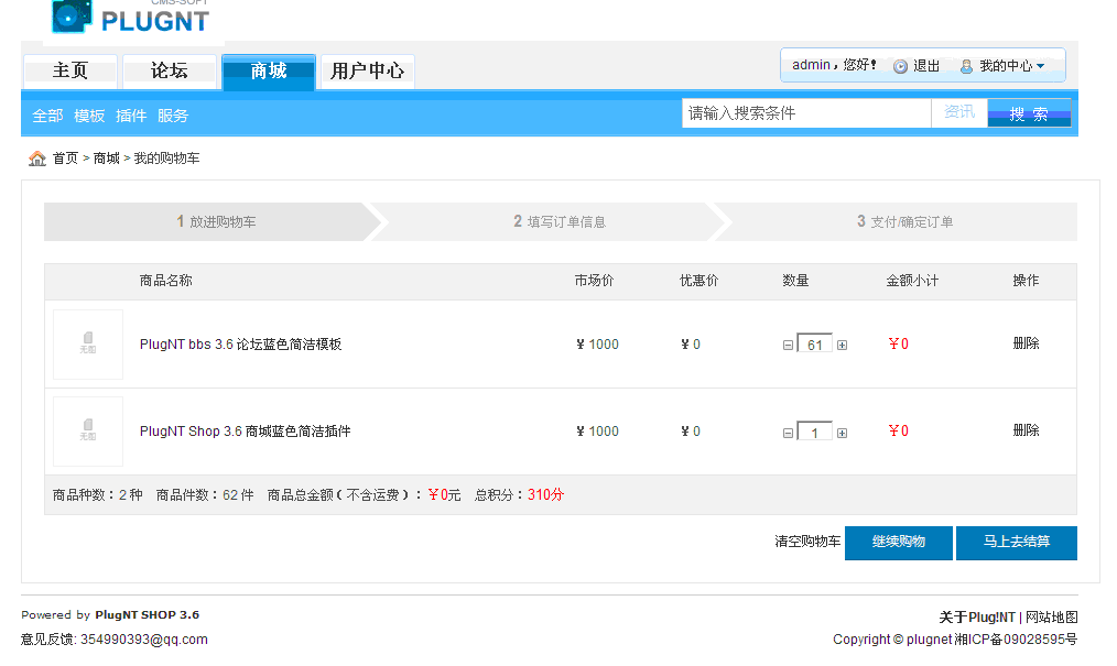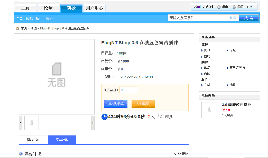 PlugNT BBS 是其中一款超轻便的开源商城程序,简单易用,PlugNT系统组成部分之一,系统采用ASP.NET(C#) +Access/MsSql + jQuery技术,简单三层结构。