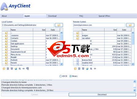 AnyClient是一款简单好用的FTP客户端软件。软件支持在线模式和离线模式,可以实现利用网页形式上传附件或是离线模式即为客户端上传下载,软件支持FTP/S, SFTP 和 WebDAV/S,如果您对目前的FTP客户端方面还是不太理解如何实现,不妨尝试这款软件吧。