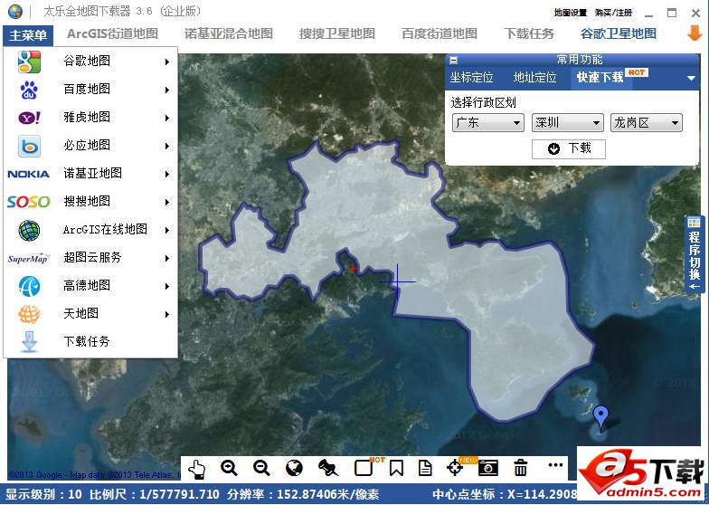 太乐全地图下载器支持谷歌、天地图、百度、诺基亚、搜搜、ArcGIS Online、高德、超图云服务、必应、雅虎的街道地图、卫星地图(卫片)、标签/卫星混合地图、地表地形图的高速下载、无缝拼接、分块拼接、无损压缩、投影转换、离线浏览和地图服务发布。