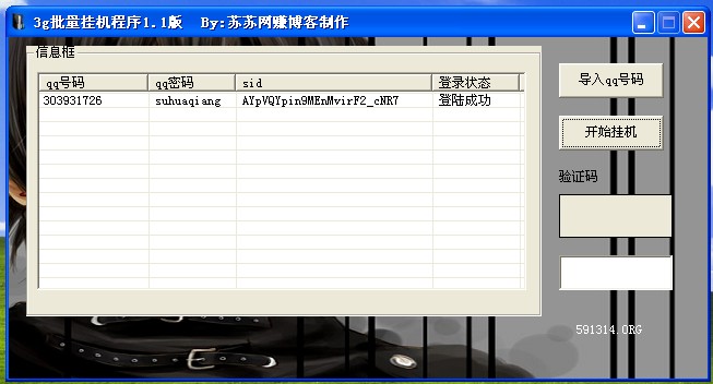 3g批量挂机程序(3gqq批量在线工具)采用腾讯3GQQ接入口,批量挂Q,优化内存,程序小巧。