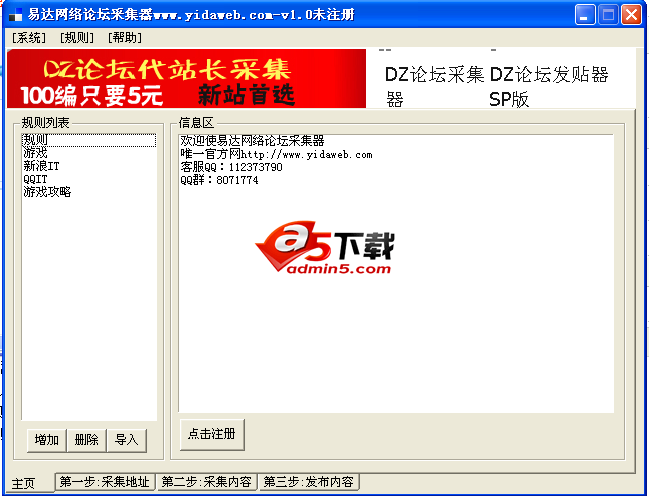 易达网站论坛采集器V1.0主要用Discuz!X2.5论坛采集发贴自动一体化软件,帮助新站长的网站快速填充论坛内容的必选软件!