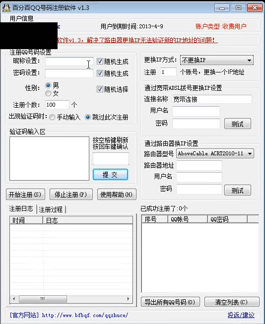 百分百QQ号码注册软件 v1.9