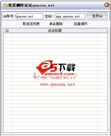 群森QQ空间说说批量删除软件是一款简单好用的QQ空间说说批量删除软件。软件拥有获取说说列表、批量删除、单条删除功能,用户只需要登陆QQ,然后选择想要删除的说说ID即可快速批量删除说说。软件界面美观简洁、简单全面、实用方便,可快速上手,轻轻松松完成日常QQ空间说说批量删除功能,真正做到简单全面实用。是用户实现QQ空间说说批量删除功能的好帮手。