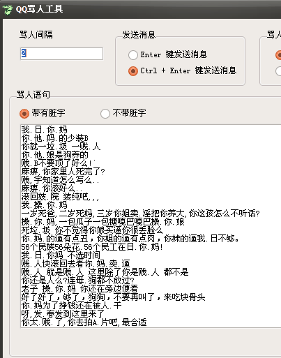 QQ自动骂人工具,支持最新的QQ2013,可以自定义骂人的话,也自带了好些带脏字的和不带脏字的骂人的话。