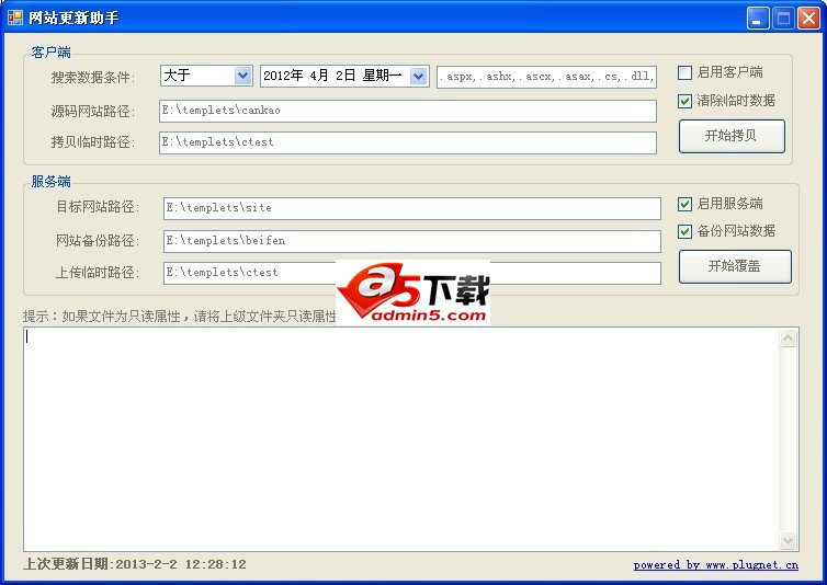 PlugNTSiteCopy 网站更新助手隶属于PlugNT CMS开发辅助产品。主要用来提高网站开发中遇到的时间效率,也可以用来快速备份和更新其他类型站点。