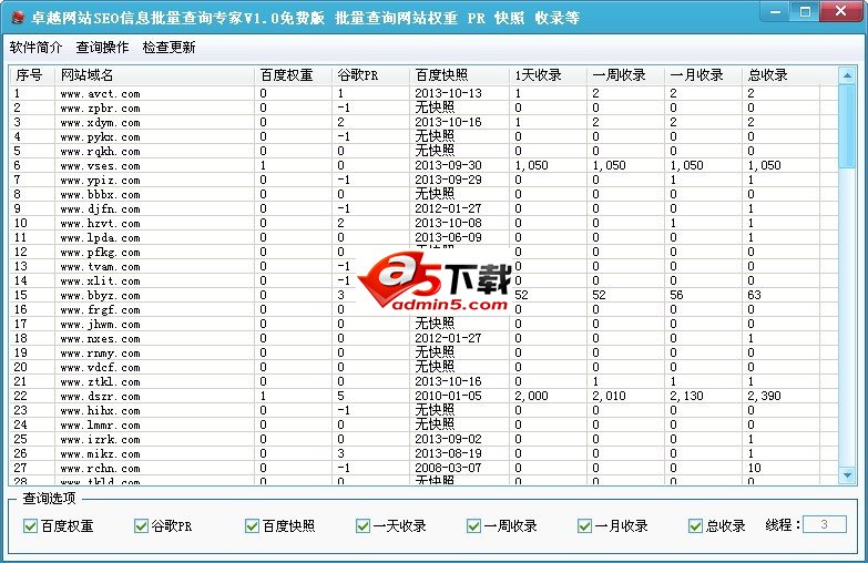 卓越网站信息批量查询专家是一款可以批量查询网站收录 网站快照 网站权重 网站PR的多功能查询软件!