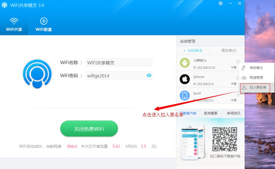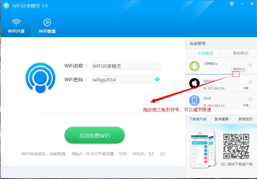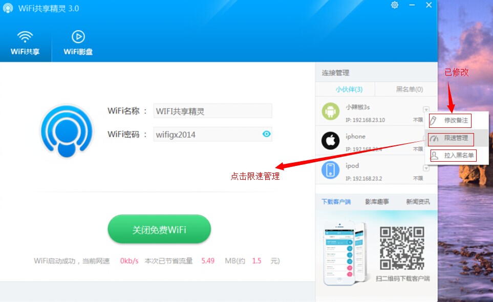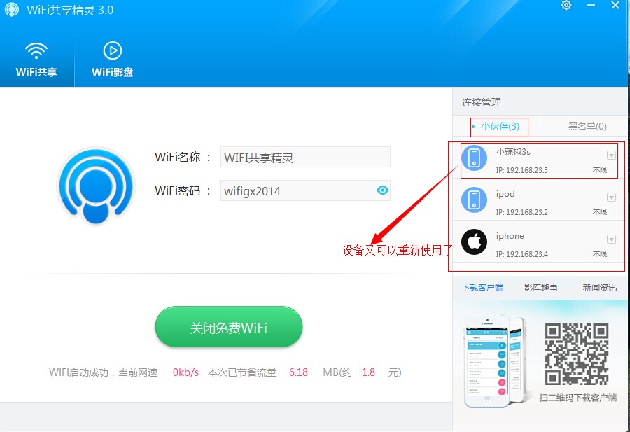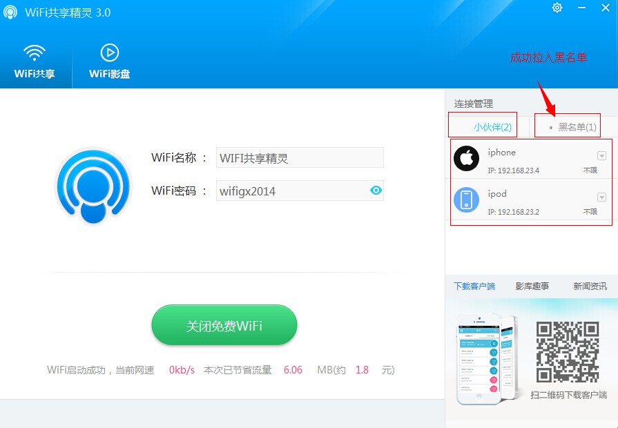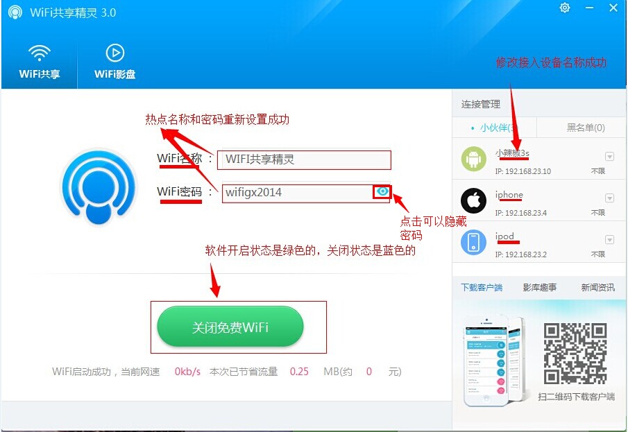 安全连接:可自定义无线共享帐号,密码,自主性极高,带防蹭网防火墙(可以T人),有效控制别人蹭网;