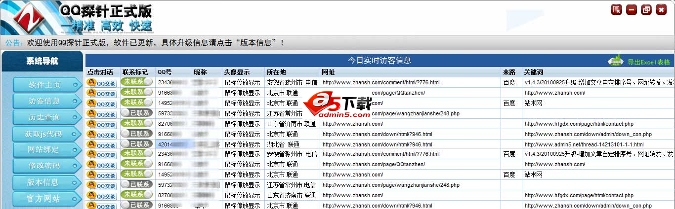 1、可探针到访客的QQ号码
