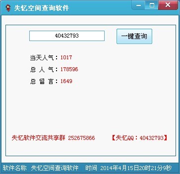 失忆QQ空间人气留言查询软件是一款能够精准的查询QQ空间人气和留言的一款软件,非常实用。