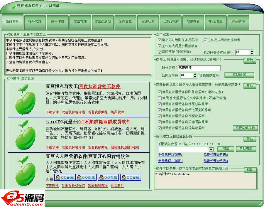 豆豆博客营销王是一款博客网络推广工具,功能强大,完全免费,是博客推广的强大工具。