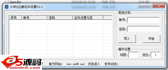 少年QQ查证件设置可以批量查询QQ是否设置证件,以便于qq用户更好的管理自己的QQ。多线程批量查询,添加若快打码平台,提供自动打码,保存操作信息,自动生成文本(冻结,密码错误,身份证,身份证空)四个文本。更新若快平台打码,去掉手动打码功能。