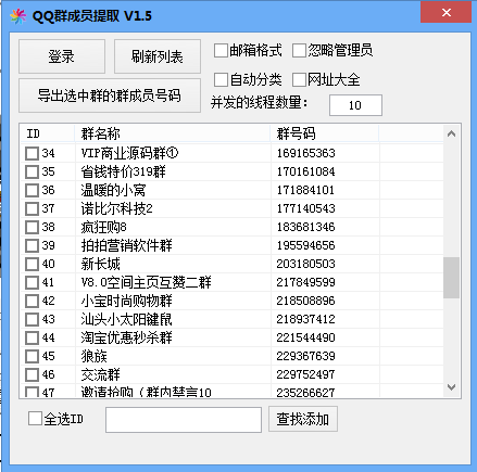 QQ群成员提取,支持QQ一键登录功能,只要你的电脑已经登陆了QQ就可以一键了,登陆后自动刷新QQ群列表