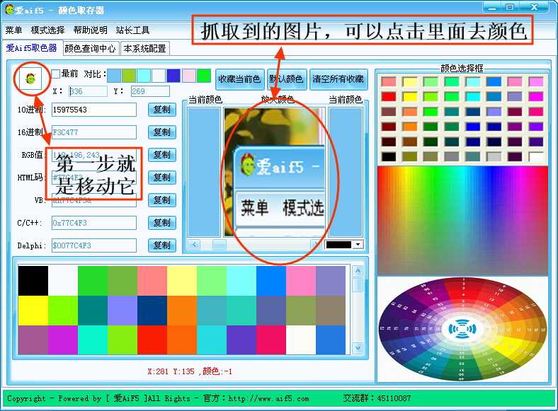 3、爱aif5桌面屏幕取色软件使用方法如图解↓