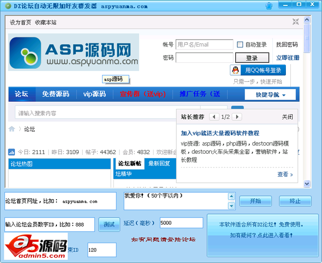 Discuzcms系统论坛自动加好友群发广告只要是Discuzcms系统的论坛,都可以自动实现加好友 群发广告!