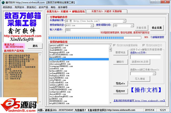 鑫河邮箱采集工具软件可以根据产品关键字、行业关键字、目标客户产品关键字通过商业引擎、国家区域引擎、行业引擎搜索全球潜在客户信息。软件支持灵活运用关键字组合搜索你所想要的邮箱地址,从而为你的产品广出去。它可以用在外贸行业中。它是一个邮箱搜索软件+关键词和邮箱后缀名采集邮箱+关键词采集邮箱软件(无数量限制)的采集邮箱功能。