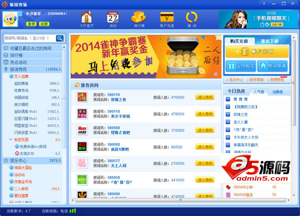 新浪秀场是可同时显示多人视频的聊天室,用户可以再聊天室唱卡拉OK(KTV),听歌,玩游戏。新浪秀场聊天室能使您真正做到在网上实时面对面的交流,是目前网络上面最流行的视频娱乐交友平台。