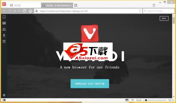 由上图可以看出,Vivaldi浏览器浏览器的布局与Opera浏览器非常相似,菜单项位于浏览器的左侧。