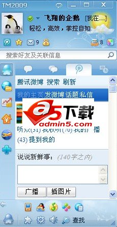 腾讯TM(Tencent Messenger) 2009 v3.2 Beta全新特性如下: 新增微博功能,沟通多样化
