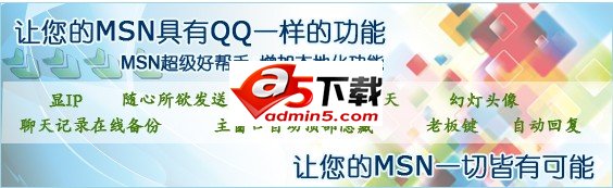 MSN助手 针对MSN的一些弱项提供了像QQ一样发送大图、截图,显示好友IP,防诈骗,好友来消息时不再强制弹出弹出聊天窗口,去广告、聊天记录的网盘备份的功能,还增加了加密聊天、幻灯头像、老板键、ALT+S/CTRL+ENTER快捷键发送、主联系人界面靠屏幕顶部自动隐藏,多帐号登陆等功能补充。是一款根据中国用户的使用习惯而量身打造的MSN辅助软件。