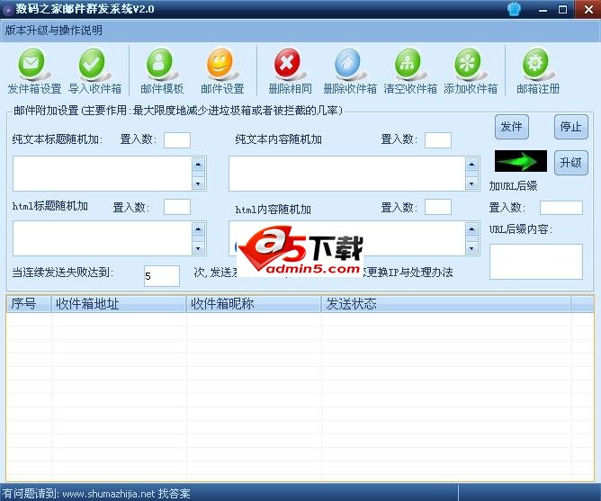 本软件由一起努力邮件群发系统全面升级而来. 也可以说是完全不同的软件.核心编程全部重写.所以重新命名: 数码之家邮件群发系统V2.0免费版