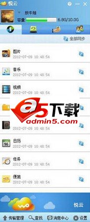 悦云是中国联通自主研发的面向个人、企业和政府用户的云计算服务。“悦云”业务实现了用户自己的信息/文件在多个设备上的协同功能(即:云同步)和文件/资料的集中存储、安全保管功能(即:云备份)和不同用户之间在线/离线状态下信息和文件分享(即:云分享)。