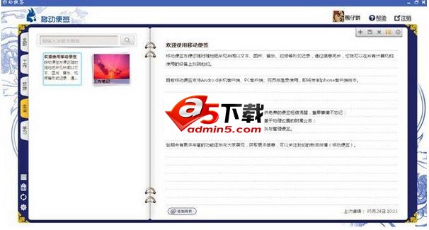 移动便签是一款信息记录软件——记录摘要、文章、图片、声音片段等,同时信息在各终端同步,具体说来,你在手持终端、电脑或服务器任一端进行了更新,另外两端也可以实时得到更新。