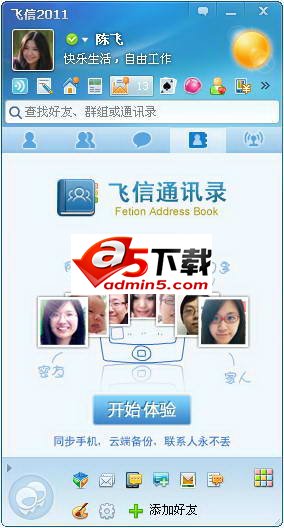 飞信2012是由中国移动推出的一款即时通讯软件,可通过PC客户端、手机客户端或WAP方式登录,也可用普通短信方式与各客户端上的联系人沟通。凭借中国移动优势飞信还提供免费短信、超低语音资费、手机电脑之间文件互传等诸多强大功能,实现永不离线、无缝沟通的状态。