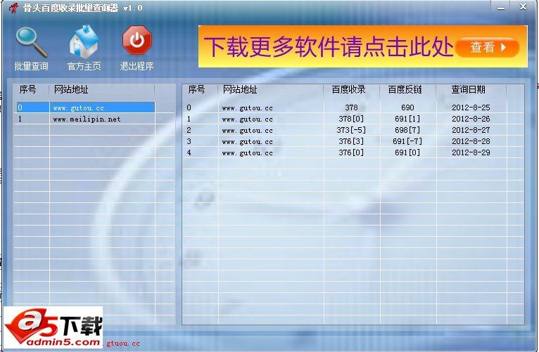 当你还在为多域名而查询烦恼的时候,骨头百度收录批量查询器就可以帮到你了,软件可以批量快速的查询域名的百度收录和反链数量,并且可以查看历史,让你知道每天的变化.