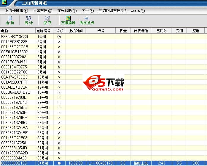 服务端具备临时卡上机、结帐、开屏、锁屏等功能外,具有卸载客户端和为客户端编号的功能,还有就是数据上传至中心服务端的功能(连锁网吧适用)可选,自己建一个中心服务端就行了(能够与外网就是广域网连接,最好有固定的IP地址,如果没有就用ADSL加花生壳解析)。连锁网吧设置中心服务端请联系作者。
