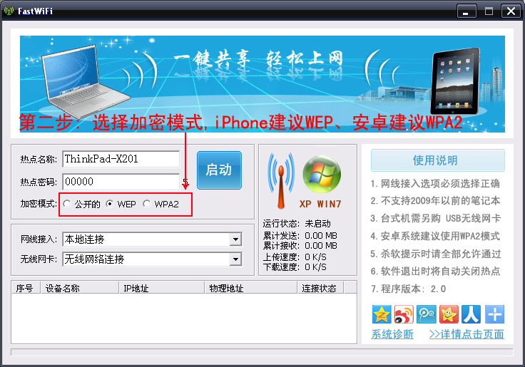 FastWiFi是一款XP、WIN7系统一键快速创建WiFi热点的无线路由软件。
