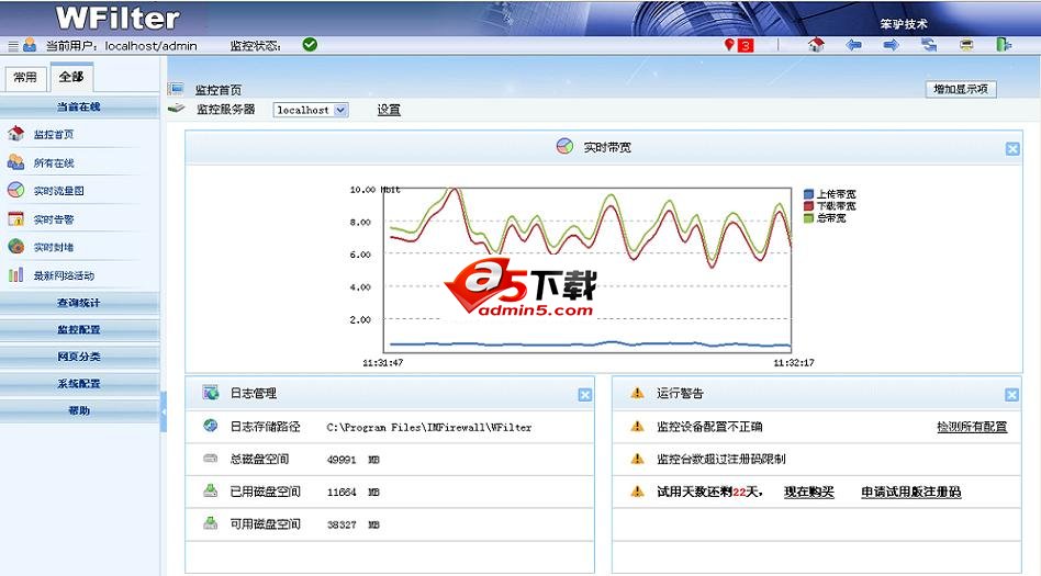 WFilter(超级嗅探狗)是一款专业的上网行为管理系统软件。软件主要适用于企事业单位对局域网内所有电脑使用互联网的情况的管理和控制,防止员工在上班时间上网娱乐。软件主要包含屏蔽网站、禁止p2p下载、禁止视频、实时流量监控等功能。软件界面美观简洁、简单全面、实用方便,可快速上手,轻轻松松完成日常上网行为管理功能,真正做到简单全面实用。是用户实现上网行为管理功能的好帮手。