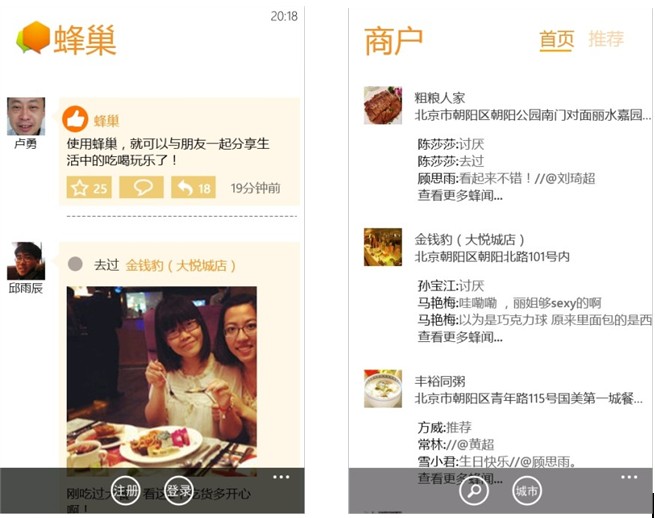 ★吃喝玩乐不在行?网上攻略枪手多?朋友推荐才最靠谱,来蜂巢看看朋友都在吃什么、玩什么!