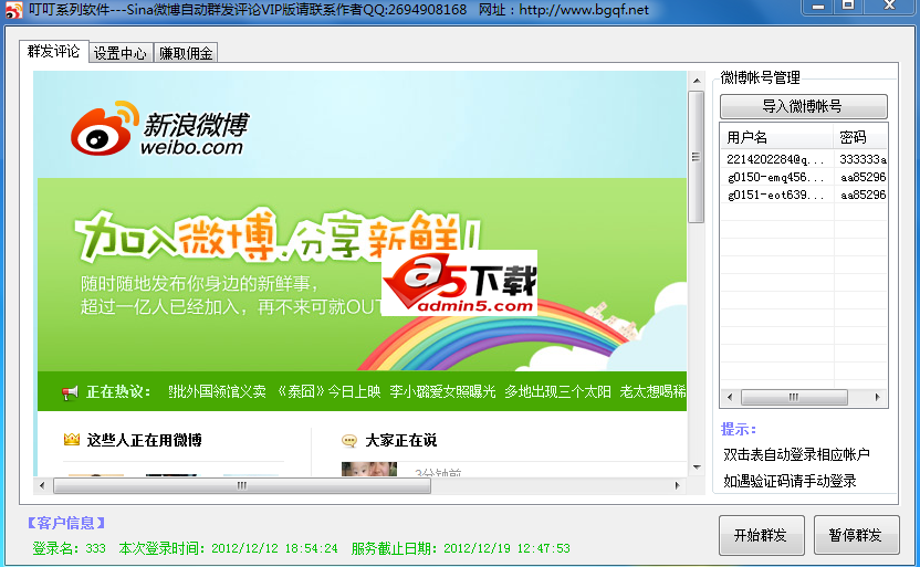 新浪微博自动群发评论软件(高级搜索,自动换号)