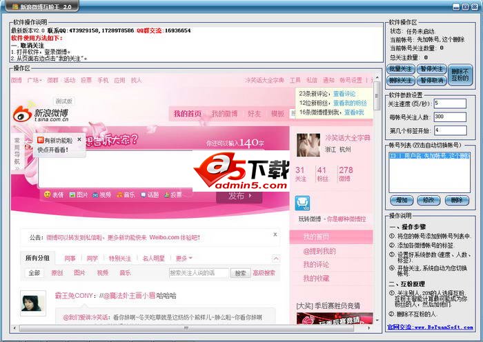 新浪微博互粉加粉王是一款可以新浪微博关注,取消关注,批量加粉,批量加群。