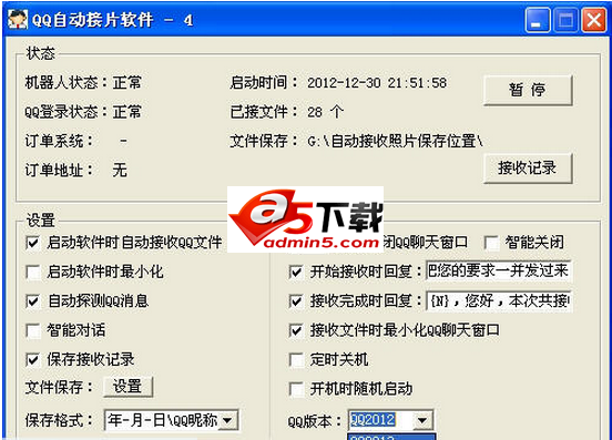 QQ自动接片软件为您带来真智能,QQ自动接片软件真正的全自动无人看守,自动完成接片、接单等任务;QQ自动接片软件是我公司首款针对数码彩扩喷绘行业量身开发的软件,QQ自动接片软件采用智能管理接收流程,QQ自动接片软件由新沸点科技隆重推出;还有独创的“智能计算平方面积价格”功能,让您一看到客户发来的照片,就知道这些图片的加起来的价格是多少,从而达到不用让您再次手动复杂的计算平方面积价格等麻烦,从而真正让您从繁重的重复式劳动中解脱出来。