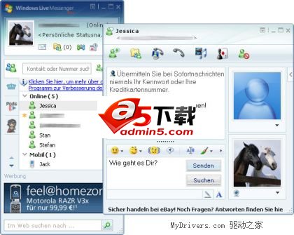 全新的 Windows Live Messenger(曾经称为 MSN Messenger)已不仅仅只是一种聊天工具,它充满乐趣、易于沟通、方便共享,是集多种特色于一体的社区化即时通讯软件,与朋友、同学、同事、家人保持更紧密的联系,易如反掌。