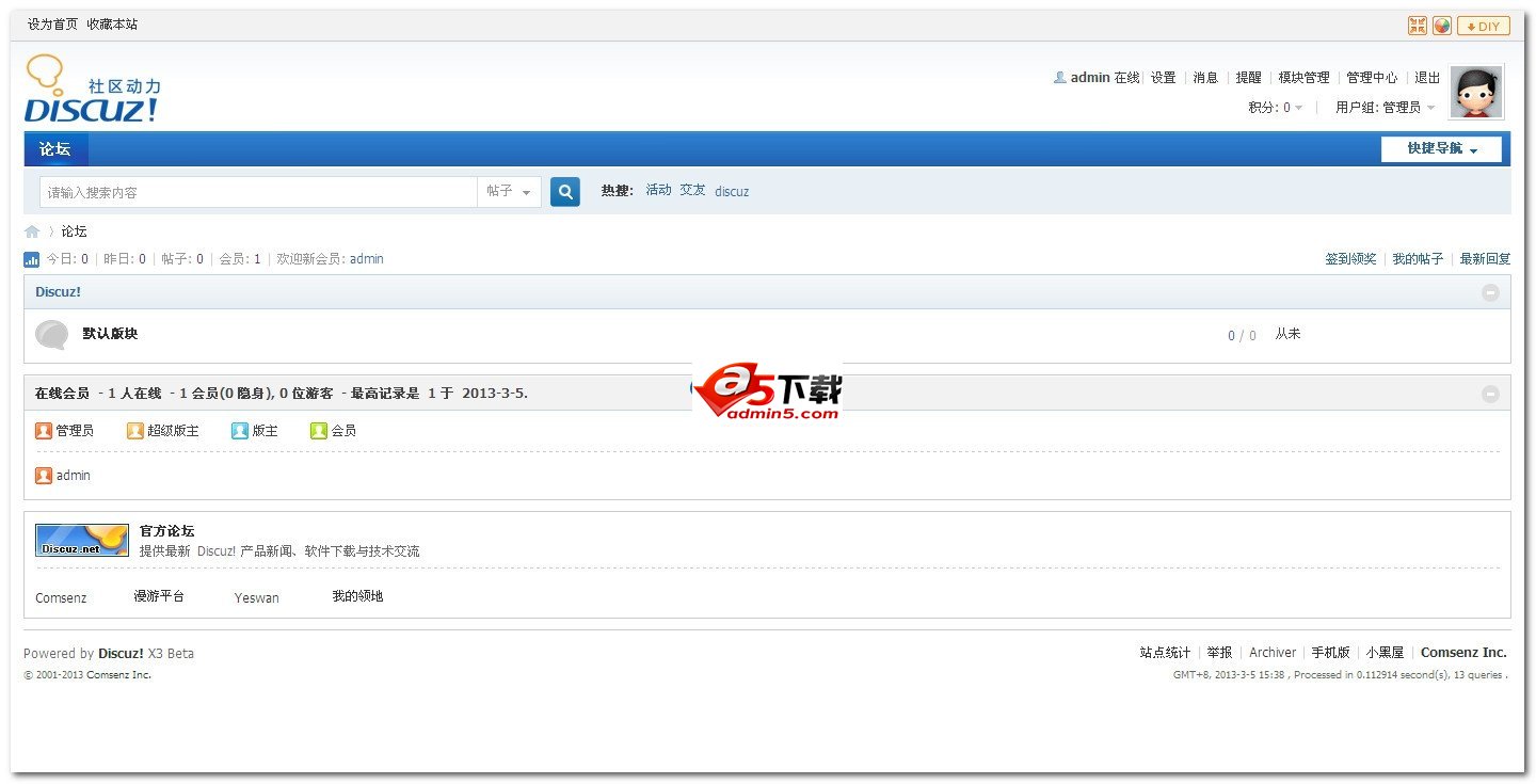 当前位置:下载COM绿色软件园 > php源码 > 社区论坛 > Discuz! X3 RC 简体中文UTF8 20130422