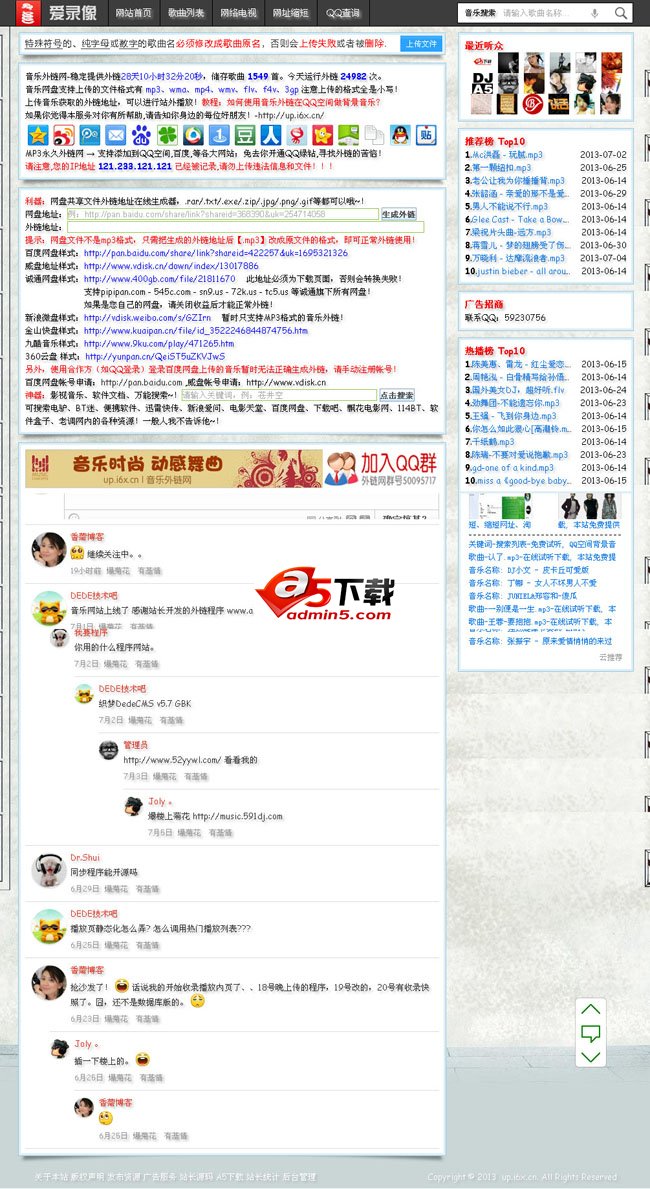 上传歌曲 网站不保存,只提供外链,详情请看演示网页