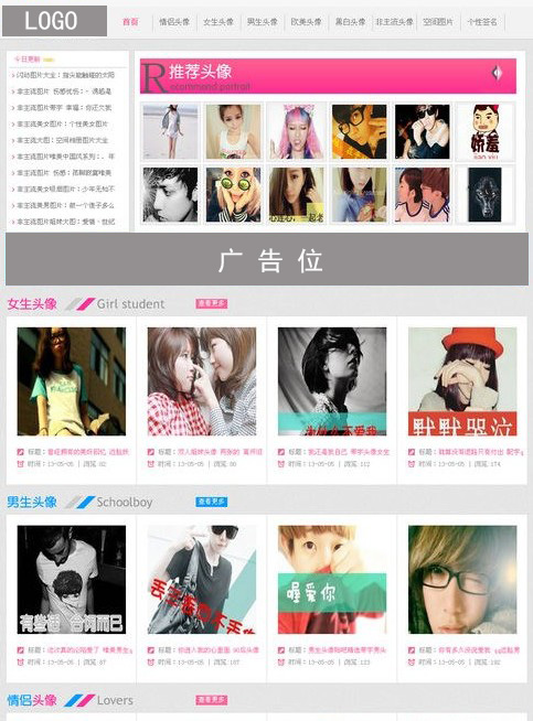 网站类型: 非主流图片源码,QQ头像网源码,意境图片源码,QQ个性网源码,唯美图片源码